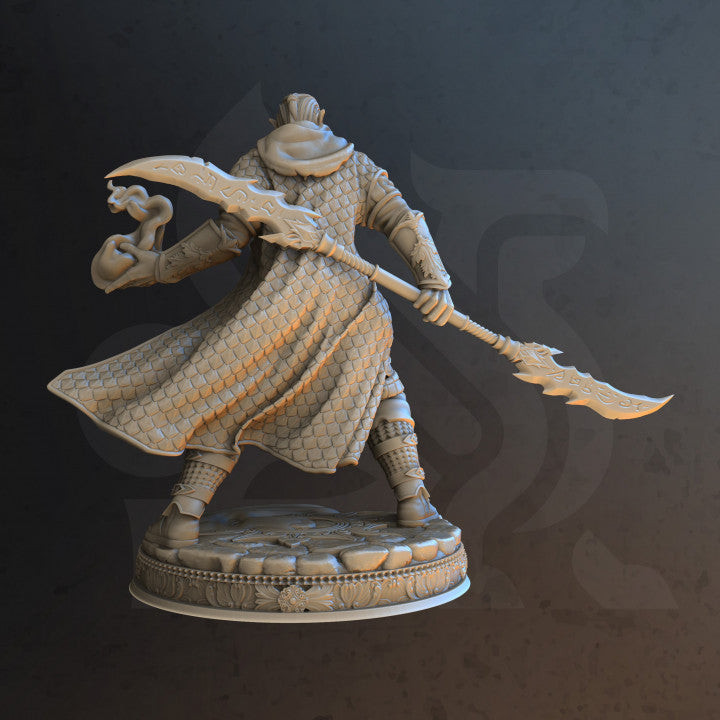 Este modelo presenta a un hábil espadachín que empuña una cimitarra de doble filo, combinando destreza marcial con habilidades arcanas. Los espadachín son combatientes versátiles, combinando a la perfección la magia con su manejo de la espada. Los intrincados detalles de la cimitarra y la armadura realzan la elegancia y el peligro de este personaje.