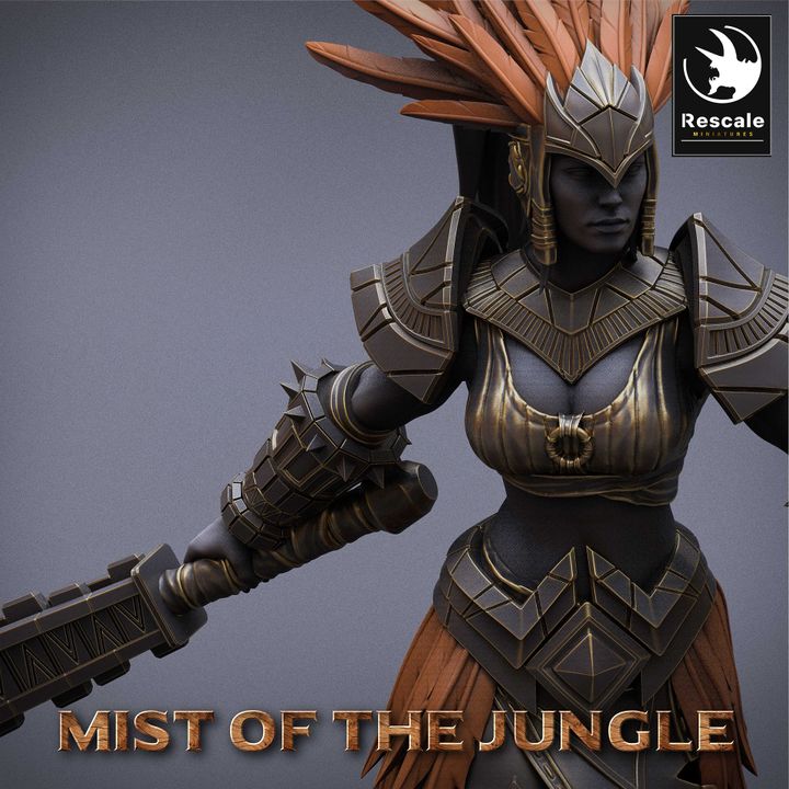 This model portrays a fierce Amazon warrior wielding a massive mace, showcasing her strength and agility. Warriors like her are known for their combat skills and tactical prowess, often seen in tribal battles. The attention to detail in her armor and dynamic posture highlights the warrior's formidable presence.
