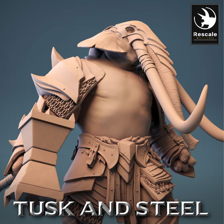 Loxodon Warrior Miniature Hammer Protector | Large | Rescale Miniatures | D&D DnD Pathfinder Miniature