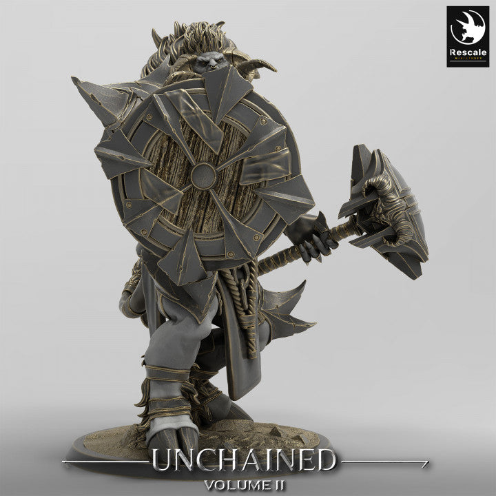 This model depicts a fearsome Minotaur Guard, known for their immense strength and imposing presence on the battlefield. Armed with heavy weaponry and clad in armor, this minotaur variant stands ready to defend its domain. Minotaurs are legendary creatures, often associated with labyrinths and ferocious battles.