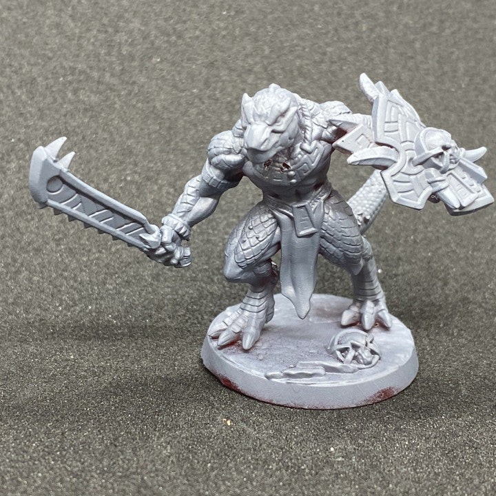 Les Hommes-Lézards sont une race fantastique classique, connue pour sa force redoutable et son affinité avec la nature. Le Lézard Gueule-d'Or représente un guerrier féroce issu de ces tribus, maniant armes et armures interchangeables. Ce modèle très détaillé offre des options de personnalisation, incluant des épées, des boucliers et des masses, parfait pour divers scénarios de jeu de rôle.