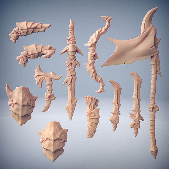 This model represents a Scourgeland Survivor, a resilient nomadic hunter from a desolate land. Clad in armor crafted from Zeek chitin, these survivors navigate their harsh environment with agility and precision. Armed with various weapons, including a chitin greatsword and hand crossbow, they stand ready to face any threat. The intricate armor design highlights the survivor's adaptability and resourcefulness amid an unforgiving landscape.