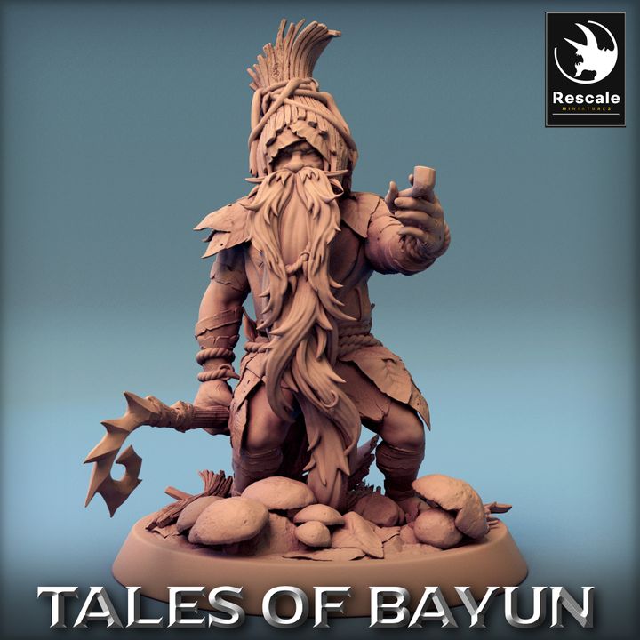 This model depicts Borovichok Smoke, a mystical forest spirit resembling a gnome or druid. With a beard and a cap resembling a mushroom, it brings the essence of the forest to life. Forest spirits like this one are often seen as protectors of nature, embodying the ancient magic of the woods.