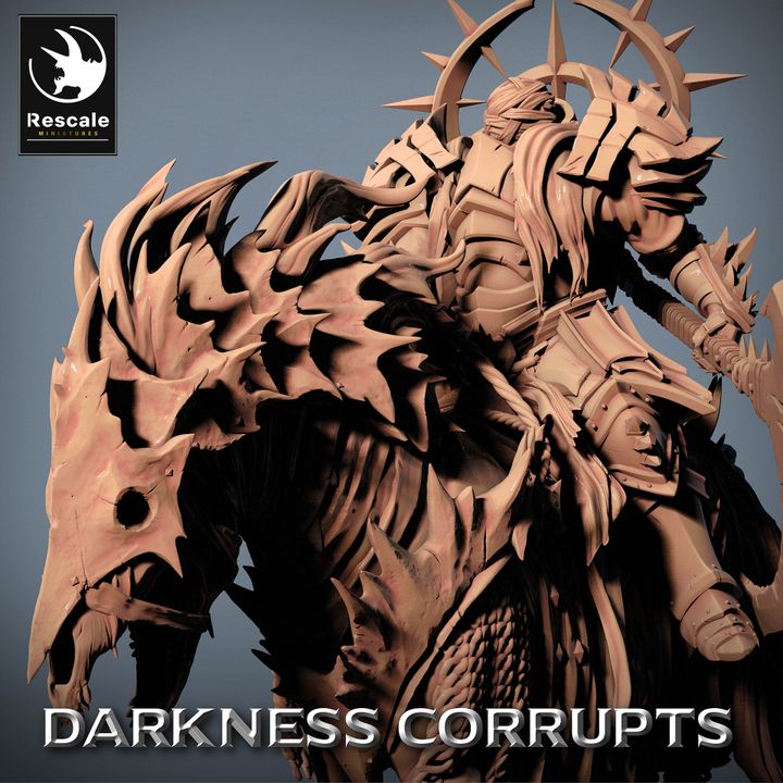 This model depicts a Darknight DeathHorse, a menacing steed often associated with dark forces and fearsome riders. Its intricate design features jagged armor and haunting expressions typical of creatures that roam shadowy realms. The model can serve as a formidable mount for any dark themed campaign.