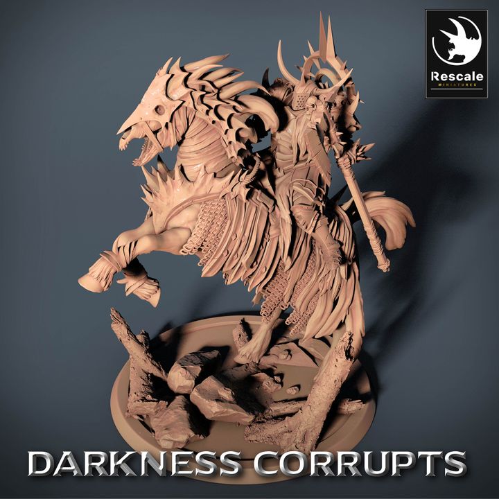 This model features the Darknight DeathHorse in a dynamic rearing pose. Fierce and powerful, the DeathHorse serves as a fearsome mount, draped in tattered armor that hints at its dark origins. Its menacing presence makes it an ideal addition to any collection featuring the folklore of nightmare creatures and undead warriors.
