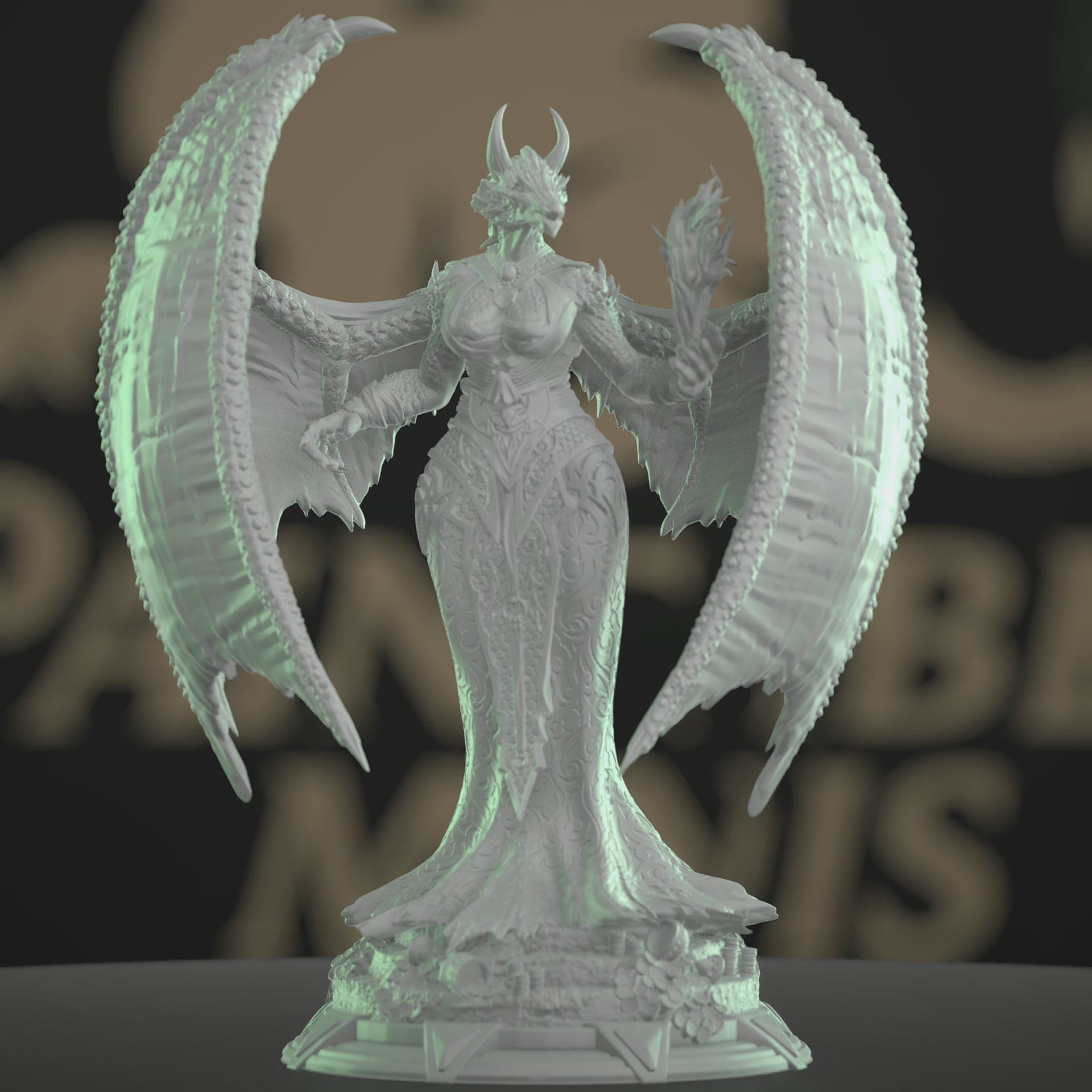 This intricately detailed dragonkin sorceress miniature depicts Tharvaya, a champion of Brazatul. With its commanding pose, dragon wings, and spellcasting gesture, this medium-sized model captures the essence of a powerful spellcaster. Ideal for tabletop RPGs or display, this miniature offers hobbyists a challenging and rewarding painting experience. Enhance your Dungeons and Dragons or Pathfinder game with this standout piece.