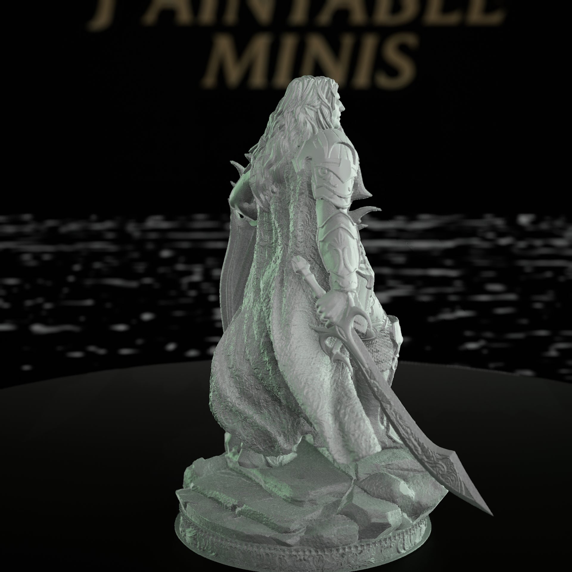 This dynamic half-elven paladin miniature stands poised with a majestic sword and intricately carved shield, perfect for any Dungeons & Dragons adventure. Crafted with exquisite detail, the model captures the essence of a battle-hardened warrior ready to defend against any foe. Ideal for tabletop RPG gamers and painting hobbyists, this medium-sized figure will enhance any display or game setting. With a dramatic pose and finely detailed armor, it's a must-have for collectors and role-playing enthusiasts.