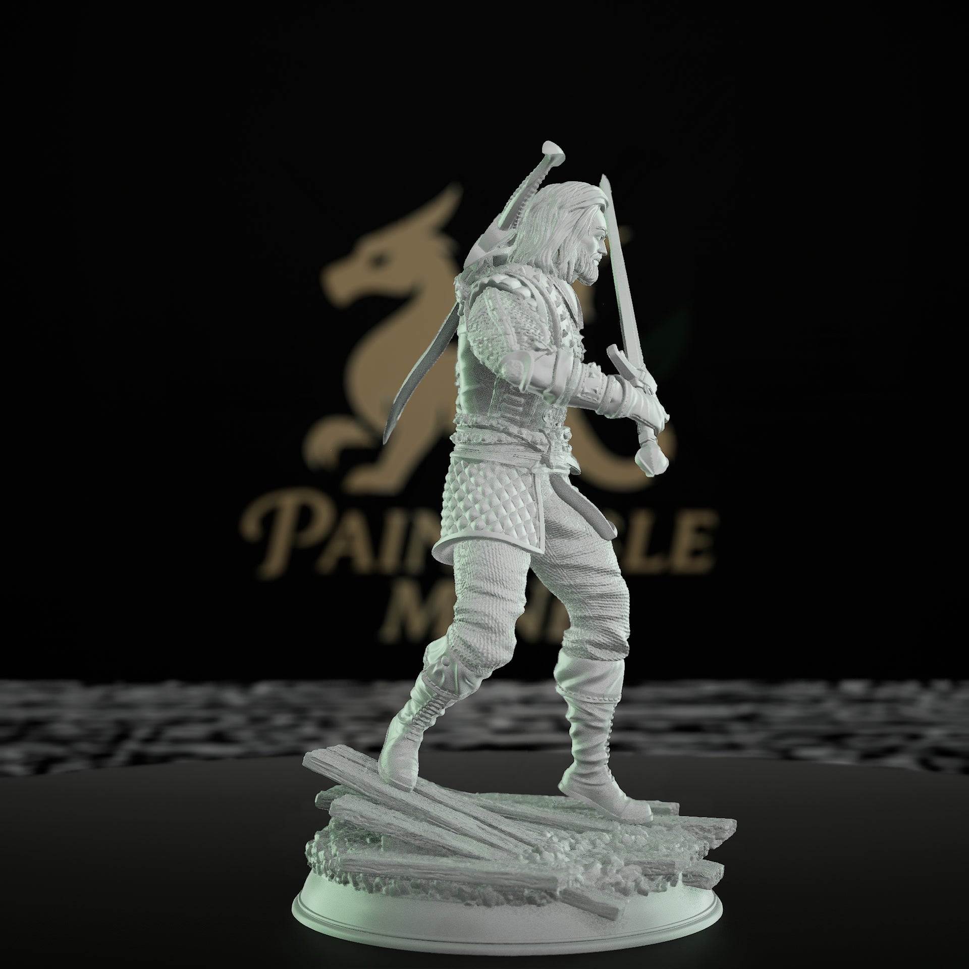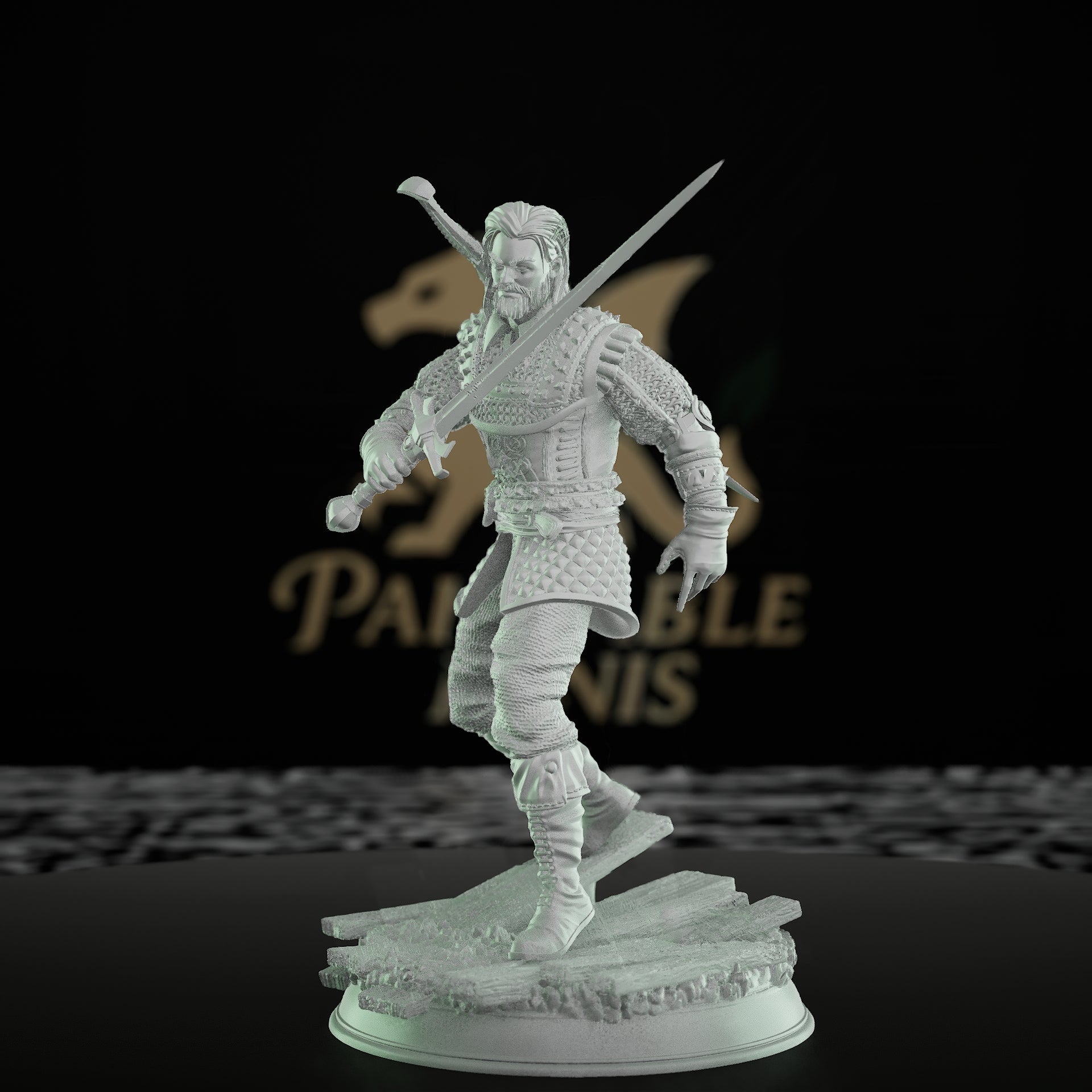 This detailed miniature depicts a seasoned Hex Hunter, wielding a massive sword and clad in intricate armor. The model captures the stoic and battle-ready stance of a legendary RPG figure. Ideal for tabletop RPG gamers and miniature painting hobbyists, this medium-sized model offers a high level of detail perfect for display or gameplay. Bring your D&D campaigns to life with this expertly crafted figure.