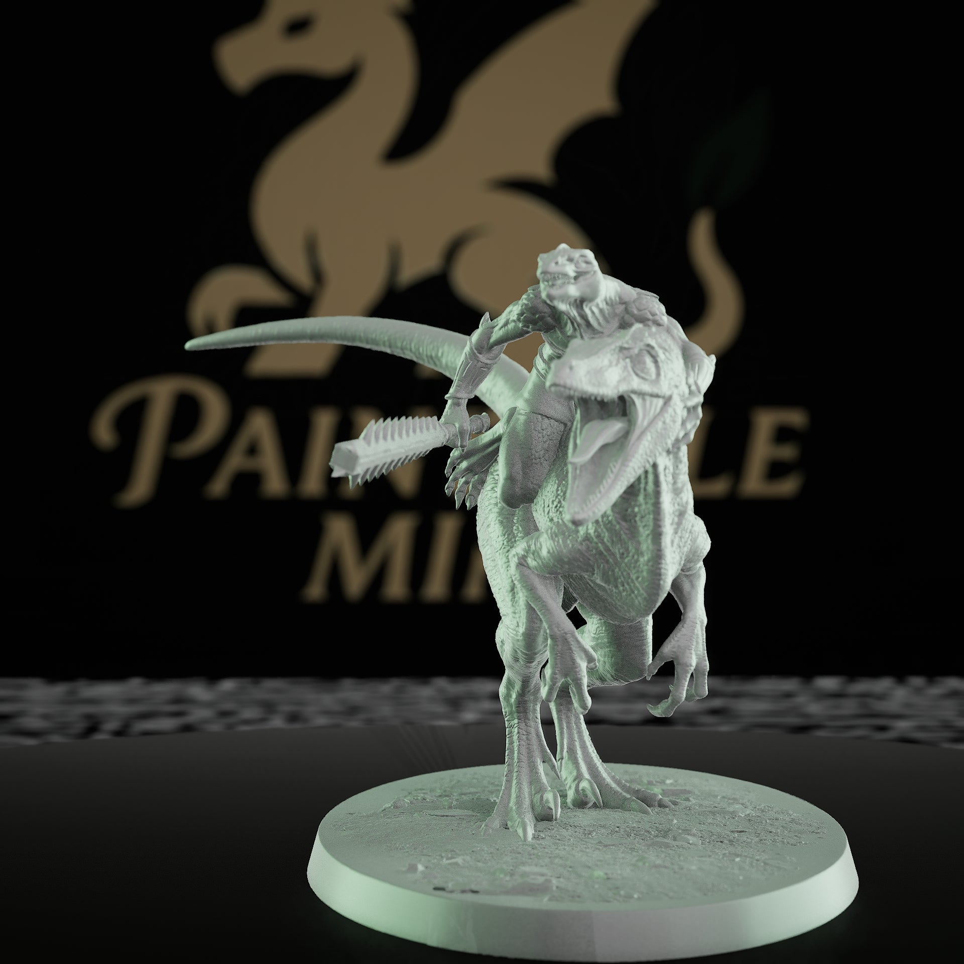 Velociraptor Rider Miniature | Dungeons and Dragons Dinosaur Mount | RPG Tabletop Miniature (35 Base)