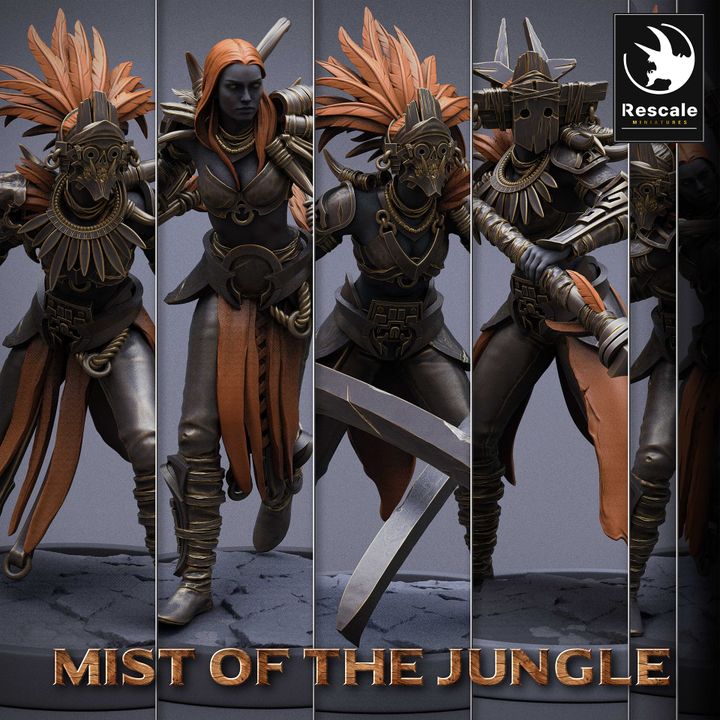 This collection features the Light Amazon Sword warriors, renowned for their agility and combat prowess. These fierce warriors protect their homeland with expertly wielded swords. The models include multiple poses, from attacking stances to marching formations. Each miniature captures the spirit and versatility of these agile combatants.