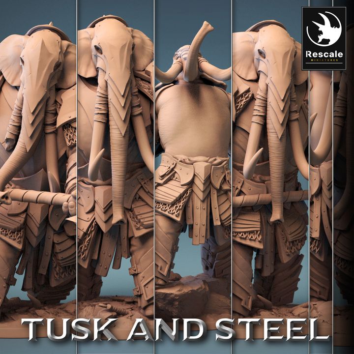 Loxodon Collection - Multiple Poses (50mm Base) Designer: Rescale Miniatures Tabletop Size: Large Base Size: 50mm