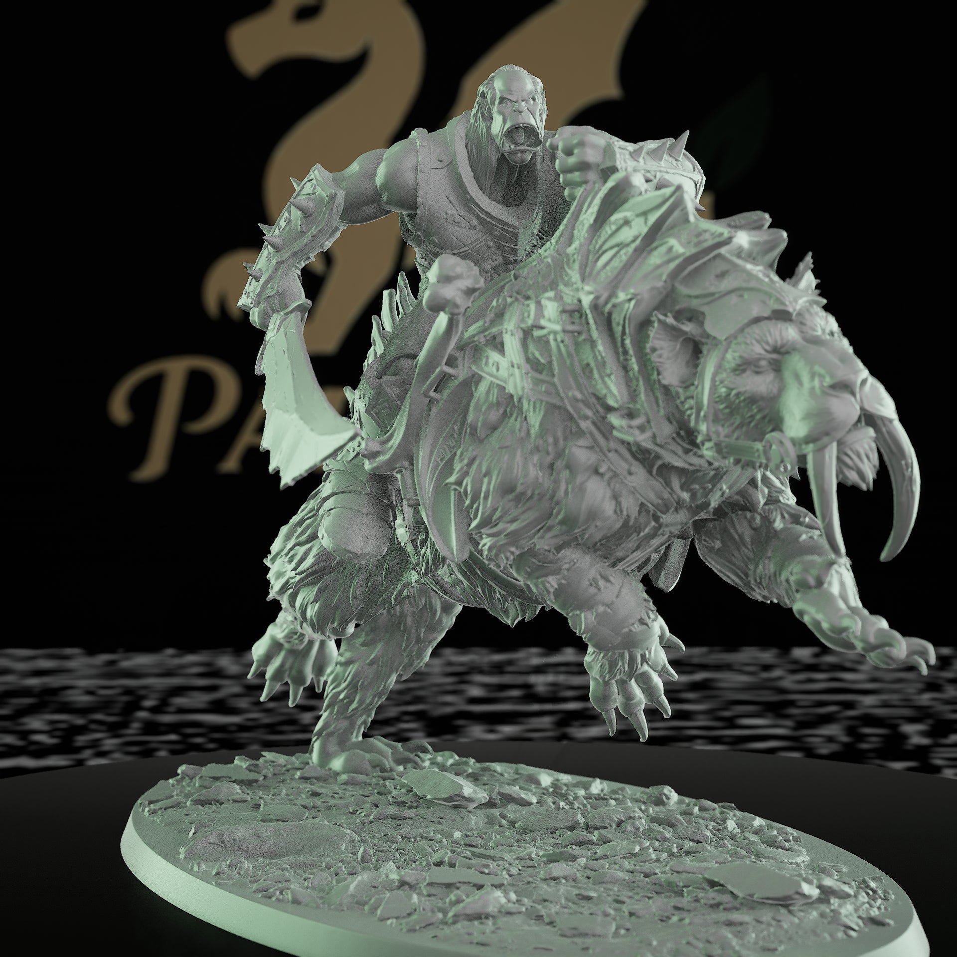 Saber-toothed Tiger Mounted Orc Miniature Rider (50mm Base)