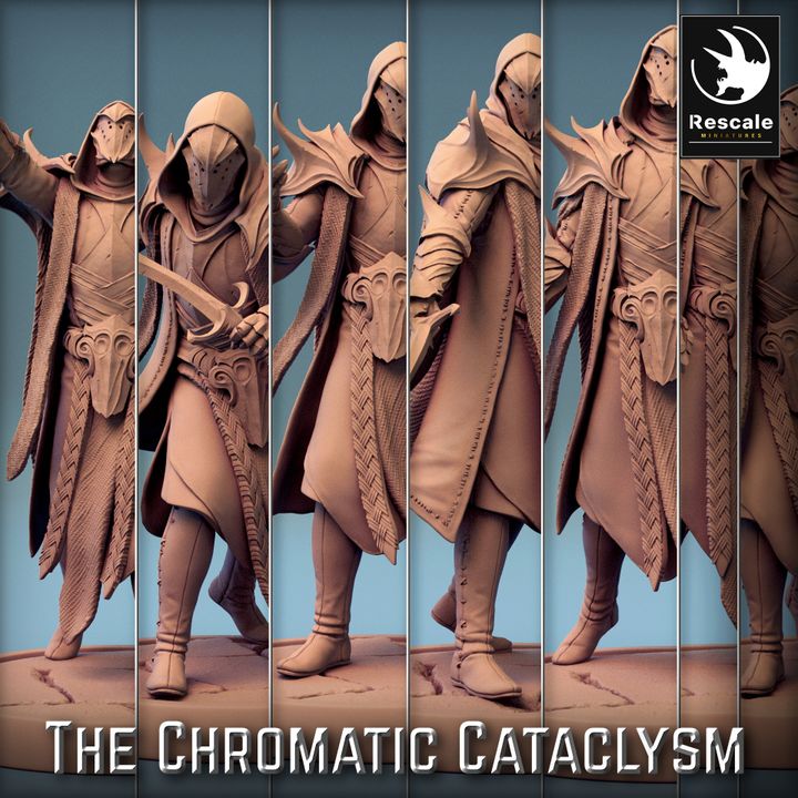 This collection features a variety of poses for Tiamat cultists, devoted followers of the dragon goddess Tiamat. Cultists often engage in sinister rituals and idolize the chromatic dragon for its immense power. Each miniature in the collection depicts intricately detailed cultists engaging in various actions, from spellcasting to veneration. Ideal for enhancing any tabletop role-playing game with the presence of dragon worshippers.