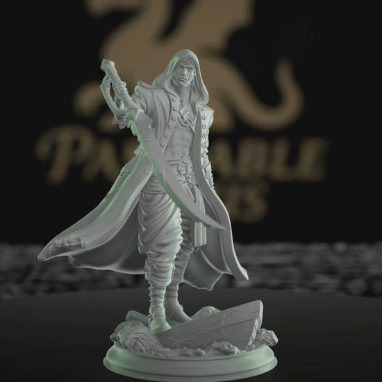 The Damned Galleon's First Mate stands poised and ready, embodying the essence of undead vengeance. With a hooded cloak billowing and cutlass at the ready, this intricately detailed miniature captures the haunted aura of a doomed pirate. Perfect for D&D and Pathfinder games, or for hobbyists seeking a challenging paint project that tells a chilling story. Bring your tabletop adventures to life with this evocative, ghostly figure.