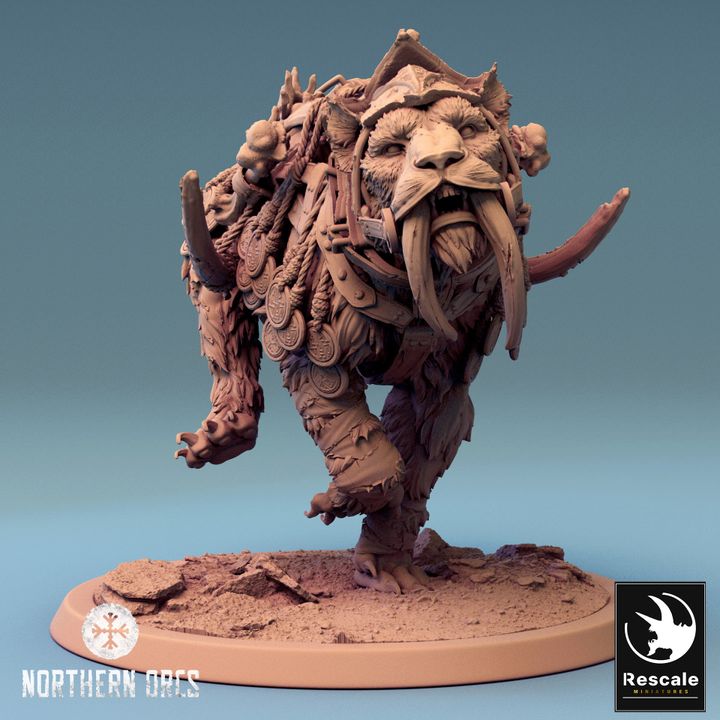 This model depicts a saber-toothed tiger, a prehistoric predator known for its massive fangs and muscular build. Often used in fantasy settings as a ferocious wild creature, this model captures the raw power of the saber-toothed tiger. The intricate detailing on the fur and fangs highlights the skill of the sculpting, making this an excellent addition to any collection.