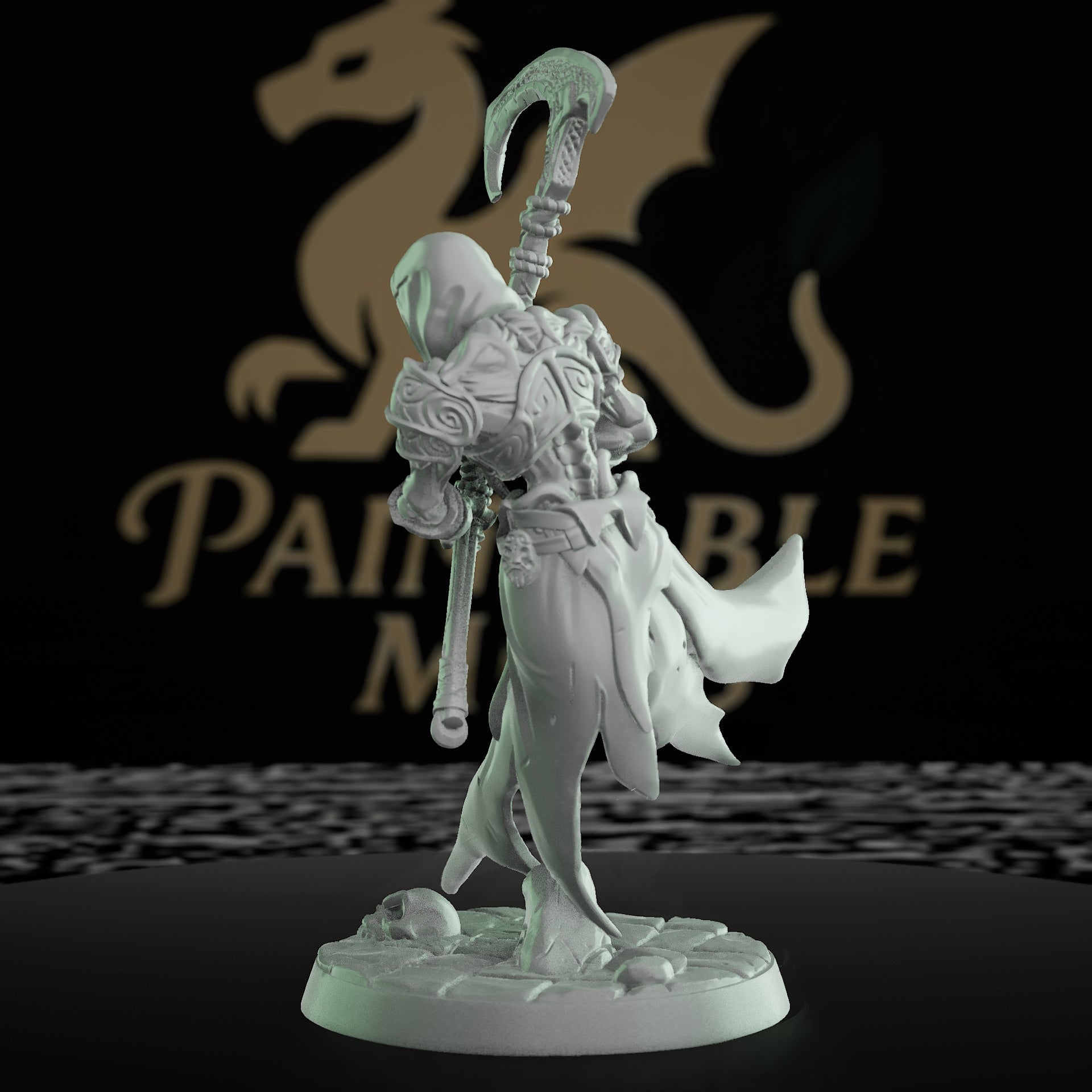 Skutagaard Wraiths are chilling specters haunting ancient cairns, ideal for adding an eerie presence to your tabletop RPG. This miniature features intricate details, from the flowing robes to the sinister, skeletal visage, making it perfect for painting hobbyists. The wraith holds a menacing scythe, enhancing its otherworldly aura. Enhance your game with this medium-sized, highly detailed piece.